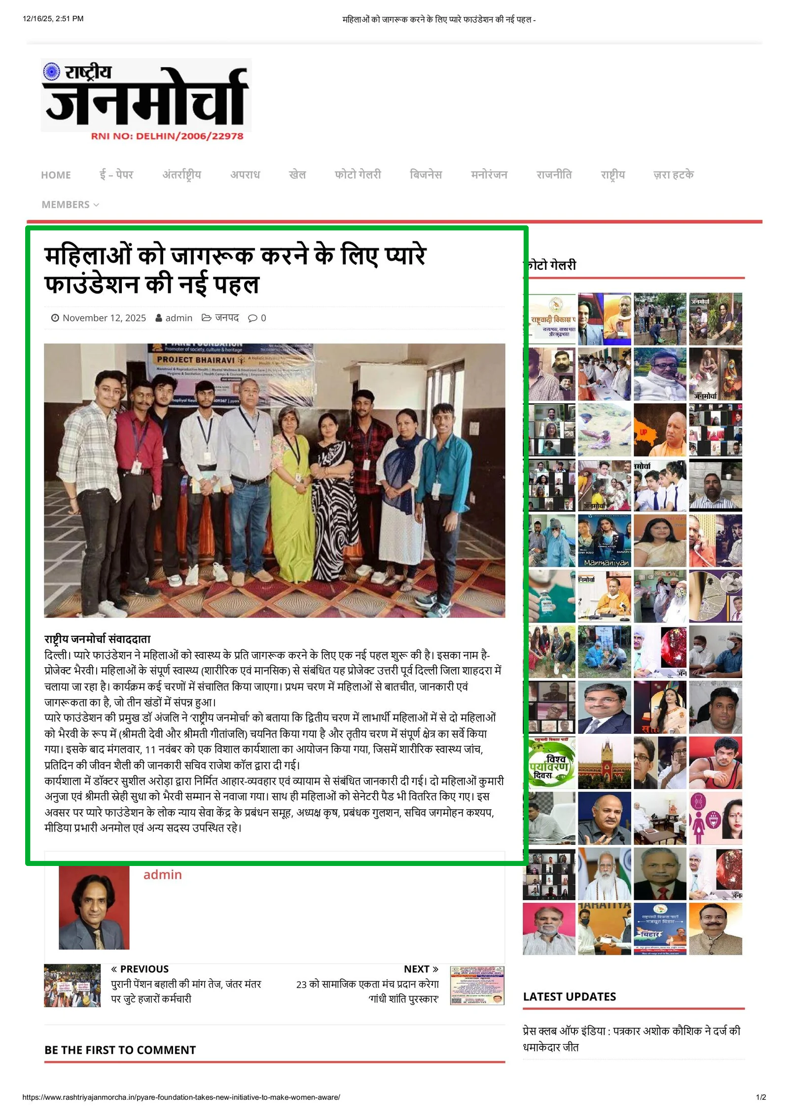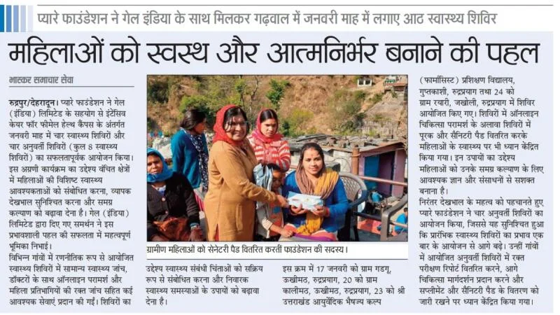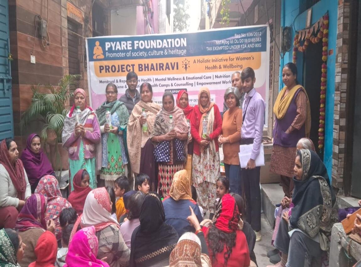 Pyare Foundation successfully organized a community health & awareness programme under Project Bhairavi, focusing on menstrual hygiene, women’s wellbeing, mental wellness, nutrition, and sanitation awareness at Gayatri Mandir, Ganga Vihar, Delhi.